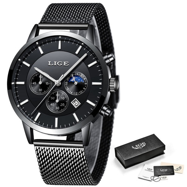 Chronograph Watch: Clock Men Steel Mesh Watch